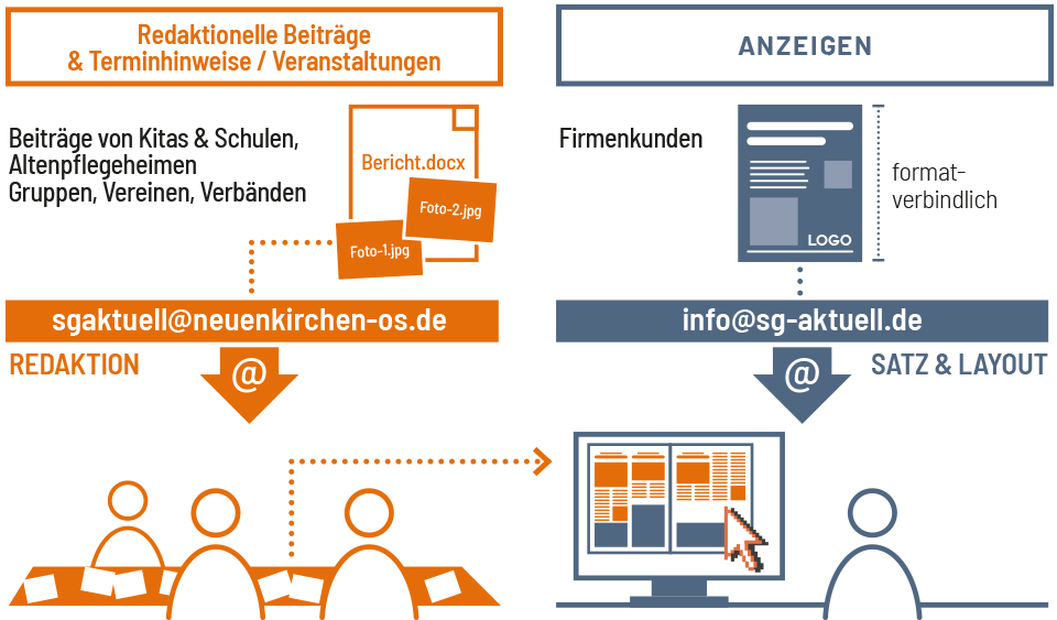 Schicken Sie dazu Ihre Inhalte an die E-Mailadresse sgaktuell@neuenkirchen-os.de oder direkt über den folgenden Button.